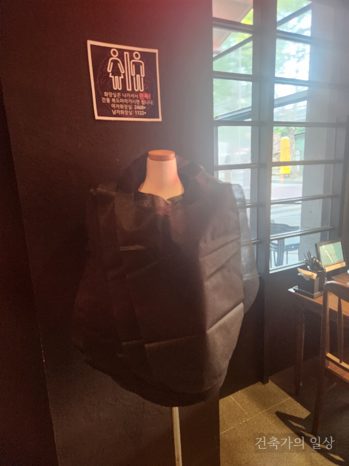 일회용 앞치마가 걸려있는 마네킹이 참신했다.