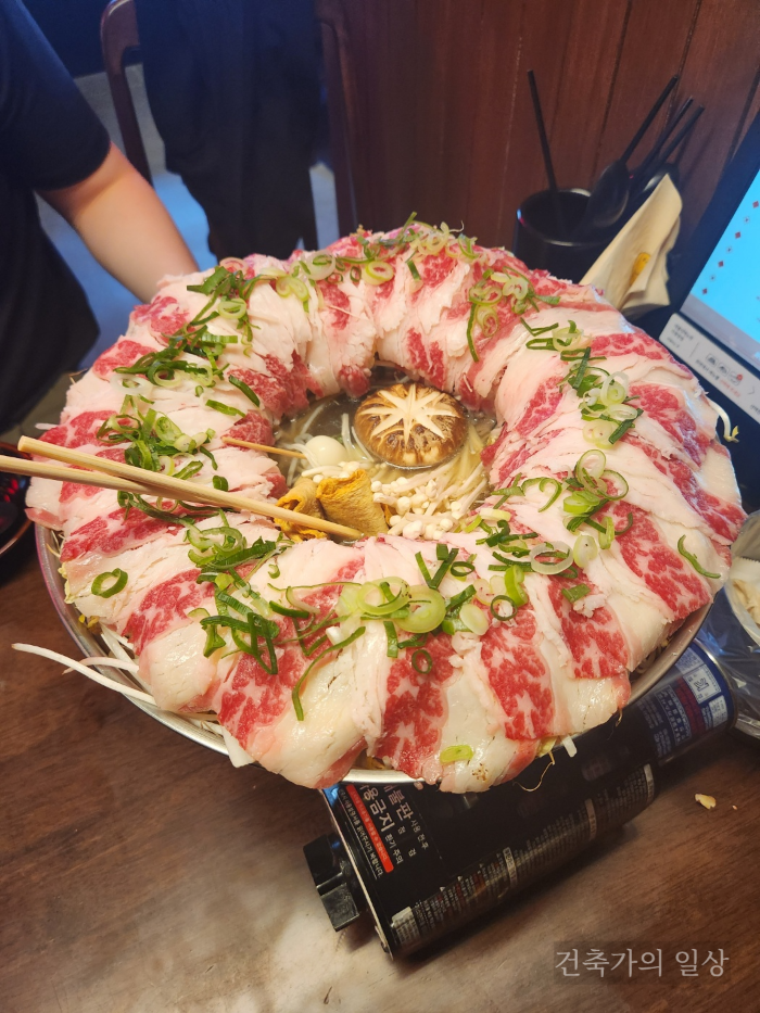 소고기와 각종 야채, 어묵 등을 넣어 끓여 먹는 샤브요리이며